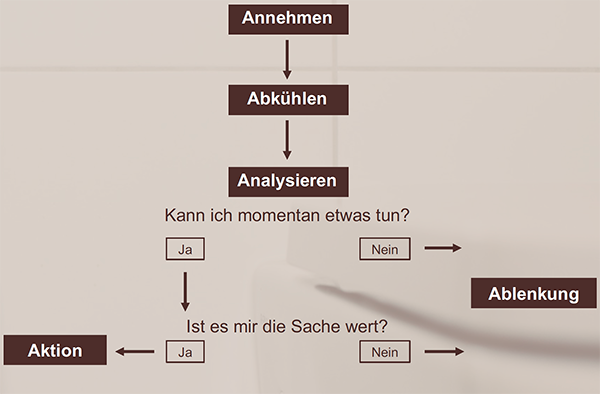 Je nach Ergebnis der Analyse geht es hier entweder um Ablenkung von der Situation oder um gezielte Veränderung der Situation.