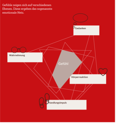 Gefühle sind psychische Zustände, mit denen wir auf Reize von außen oder innen reagieren. Als angeborenes Signalsystem dienen sie unserer Orientierung in der Welt. Gefühle zeigen sich auf verschiedenen Ebenen. Diese ergeben das sogenannte emotionale Netz.